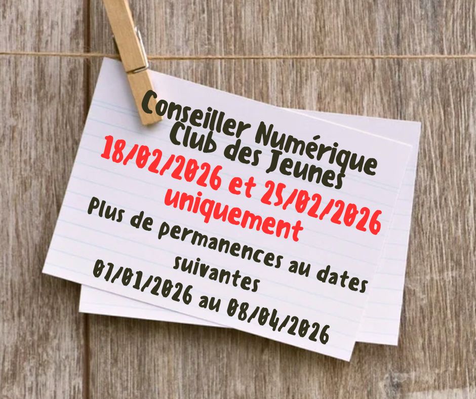 Les permanences des conseillers numériques n’auront pas lieu du 07/01 au 08/04/2026.