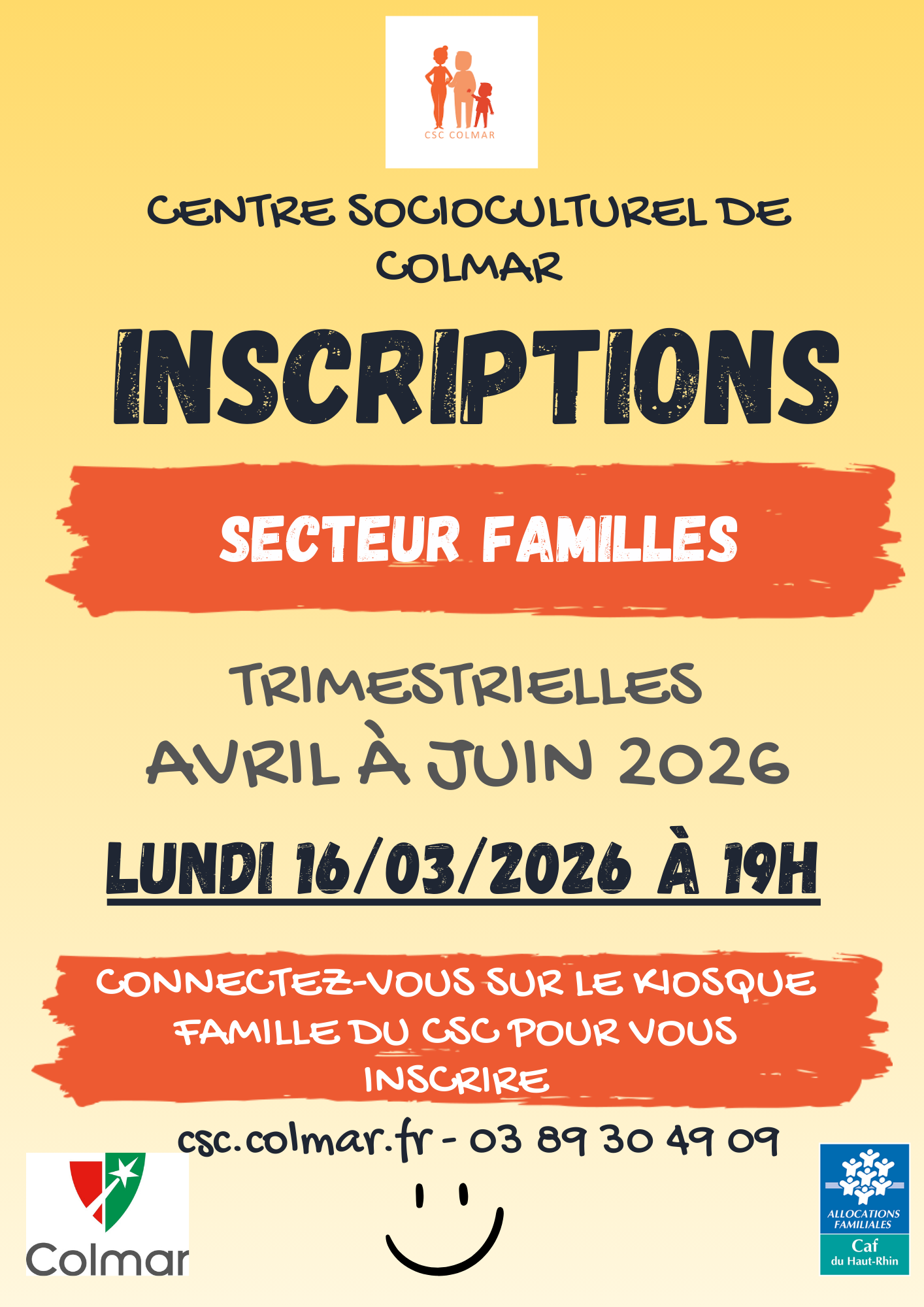 Inscriptions secteur famille-adulte pour le trimestre avril à juin